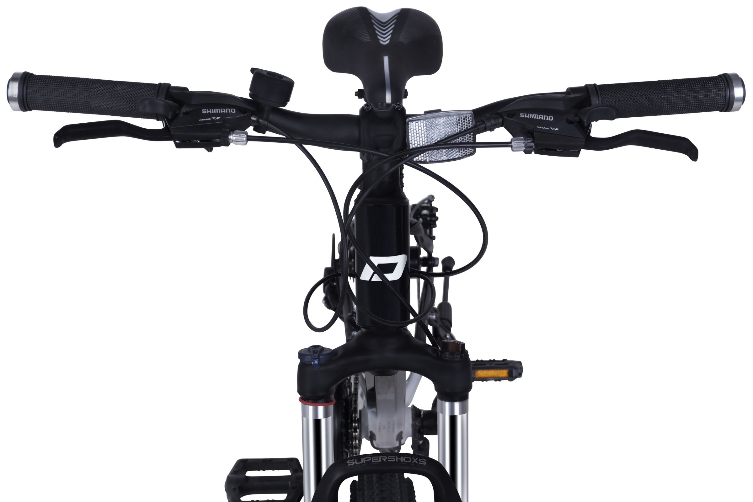 Lockouttal ellátott rugós villa, 38 mm-es rugóúttal, preload-állítással és lock-out funkcióval, valamint fekete teleszkóppal, hatékonyan csillapítja az egyenetlen terepen való haladás során keletkező rezgéseket és útegyenetlenségeket. Növeli a komfortot bukkanókon, járdaszegélyeken és burkolatlan útvonalakon. Ennek köszönhetően a kerékpár jobban beválik a mindennapi használat során és terepi kirándulások alkalmával is. A blokkolási funkció (lock-out) lehetővé teszi a villa merevítését sima utakon, kiküszöbölve a pedálozás közbeni energiaveszteséget.